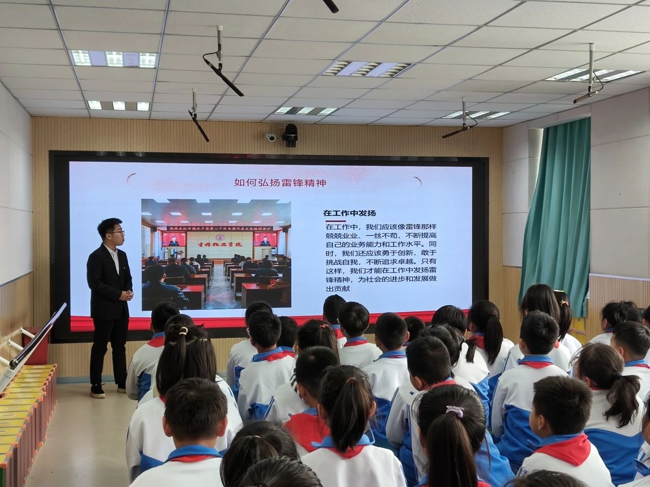 十分感谢双吉小学的老师对此次宣讲活动的大力支持,也希望此次活动能深化同学们对雷锋精神的认识,并将其落实在今后的具体行动中,让助人之风吹遍神州大地!