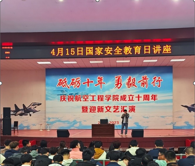 为深入贯彻落实习近平总书记“要加强对人民群众的国家安全教育,提高全民国家安全意识”的重要指示精神,坚定不移贯彻落实总体国家安全观,培养和增强师生国家安全的责任感和使命感,航空工程学院于4月11日在大学生活动中心开展4·15国家安全教育讲座,2023级全体学生参会。