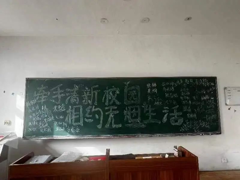 各班学生积极参加禁烟签名活动,争相在黑板上写下自己的名字,表达自己对校园禁烟活动的支持和坚定配合。立志从自身做起,互相监督,积极表达了对禁烟行动的方法及意见,推进禁烟工作高效进行,让更多的人远离烟草。