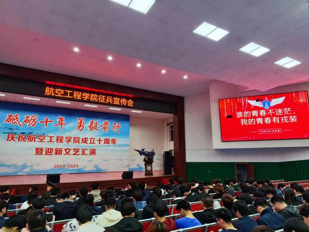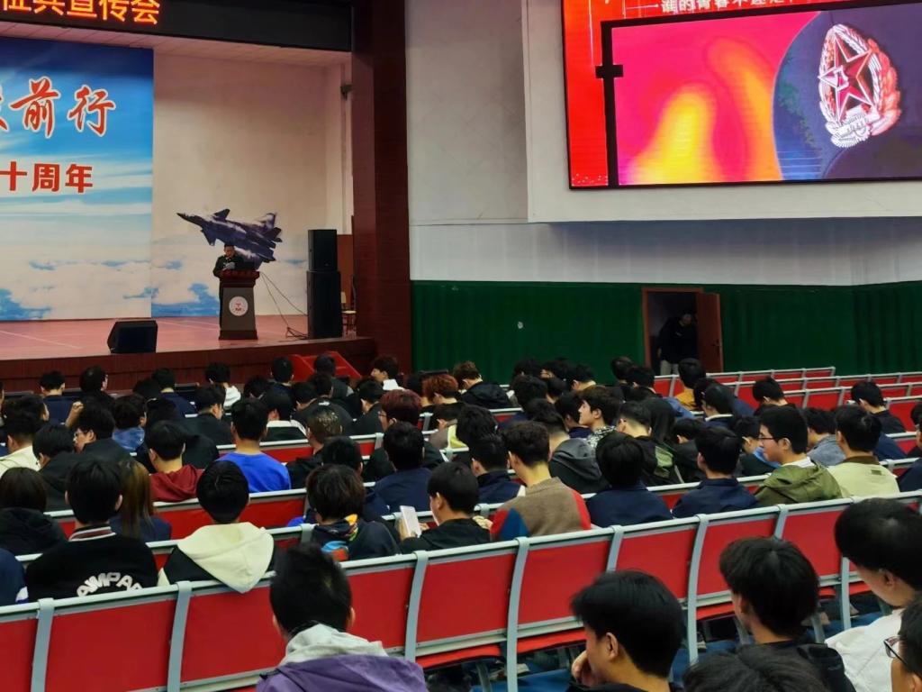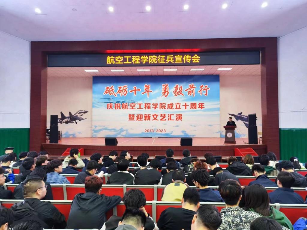 为了向学子普及国防教育,宣传征兵政策,激发青年学子的爱国热情,鼓励他们积极参军入伍,为国家的国防事业贡献力量。航空工程学院于4月24日在大学生活动中心开展征兵宣传会,2023级全体同学参会。