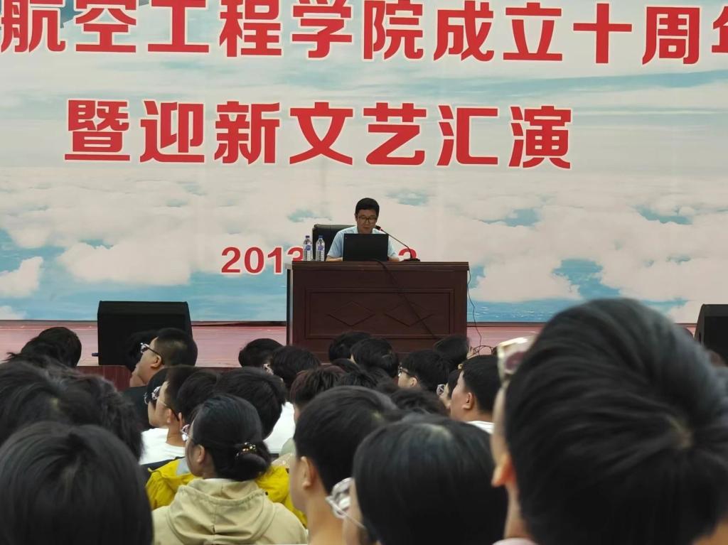 随后,由柳汀院长为新生们上入学专业第一课。柳院长结合自身的学术经历和研究成果,深入浅出地讲解了航空工程学院各个专业的学科特点、学习方法及未来发展趋势,激发了新生们对专业学习的兴趣和热情。同时,他还鼓励新生们要勇于探索、敢于创新,为航空事业的发展贡献自己的力量。