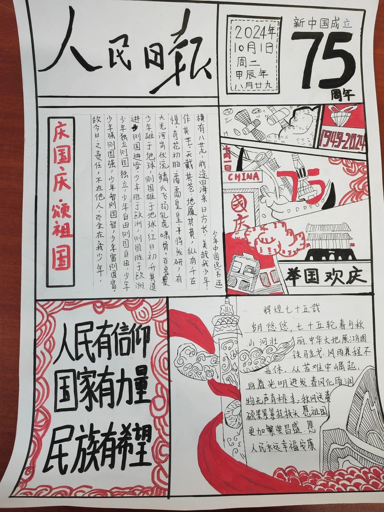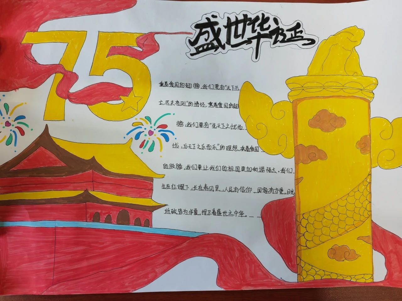 为庆祝中华人民共和国成立75周年,弘扬爱国主义精神,传承红色基因,赓续红色血脉,航空工程学院举办手抄报绘制活动,让我们挥毫泼墨,描绘新中国辉煌成就,彰显新时代青年风采!