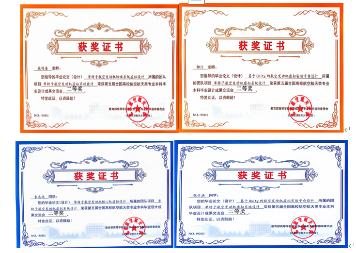 经过现场展示和答辩,由鹿鸣春、柳汀两位老师指导的2020级飞行器动力工程专业的袁志远、张子涵和朱甲鹏三名同学的作品“单转子航空发动机虚拟系统设计”获得团体二等奖,柳汀老师指导的学生袁志远作品“单转子航空发动机核心机虚拟设计”和赵秋植老师指导的学生刘琪的作品“弹射式战斗机弹药快捷挂架设计”分别获得优秀奖。