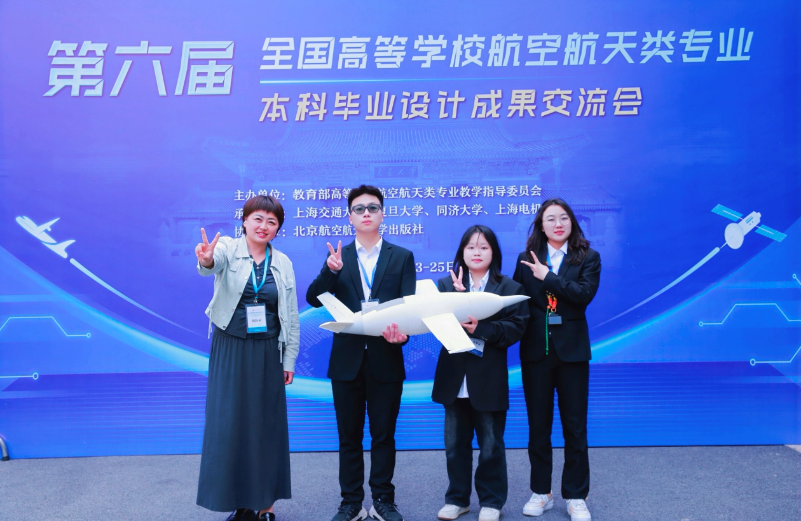 2025年5月24日,第六届全国高等学校航空航天类专业本科毕业设计成果交流会于上海交通大学顺利举办。我校航空工程学院周莉老师带领飞行器制造工程系2025届本科毕业生罗浚仁、张妩依、高居晗三名同学参赛,荣获团队二等奖,不仅充分展现了学院对航空航天人才实践能力及创新思维培养的显著成效,更生动诠释了“空天报国”的使命担当!